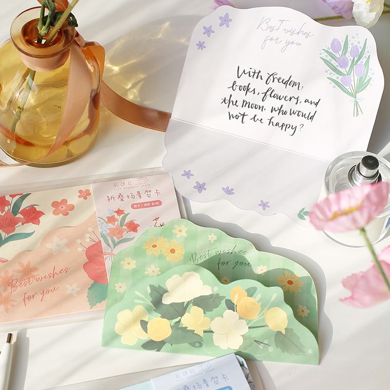 • The Flowers Folding Greeting Envelope is a set of envelopes that features a beautiful and elegant floral design, perfect for adding a touch of charm to your correspondence.