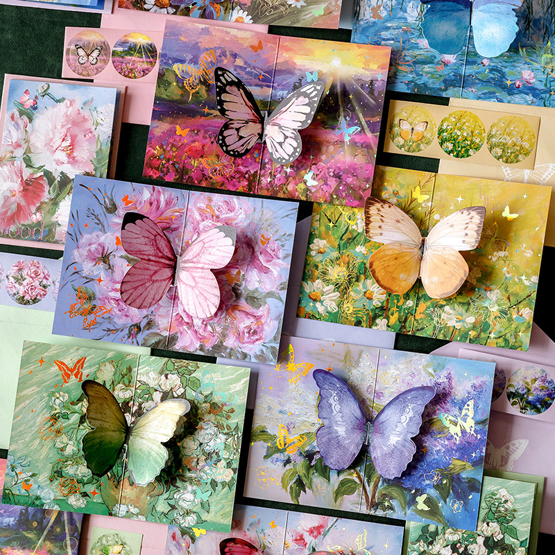 DESCRIPTION: This envelope set is a stunning collection of eight different styles, each featuring a beautiful butterfly dance on paper. The intricate designs are printed in high resolution on high-quality paper, ensuring that every detail is crisp and clear.